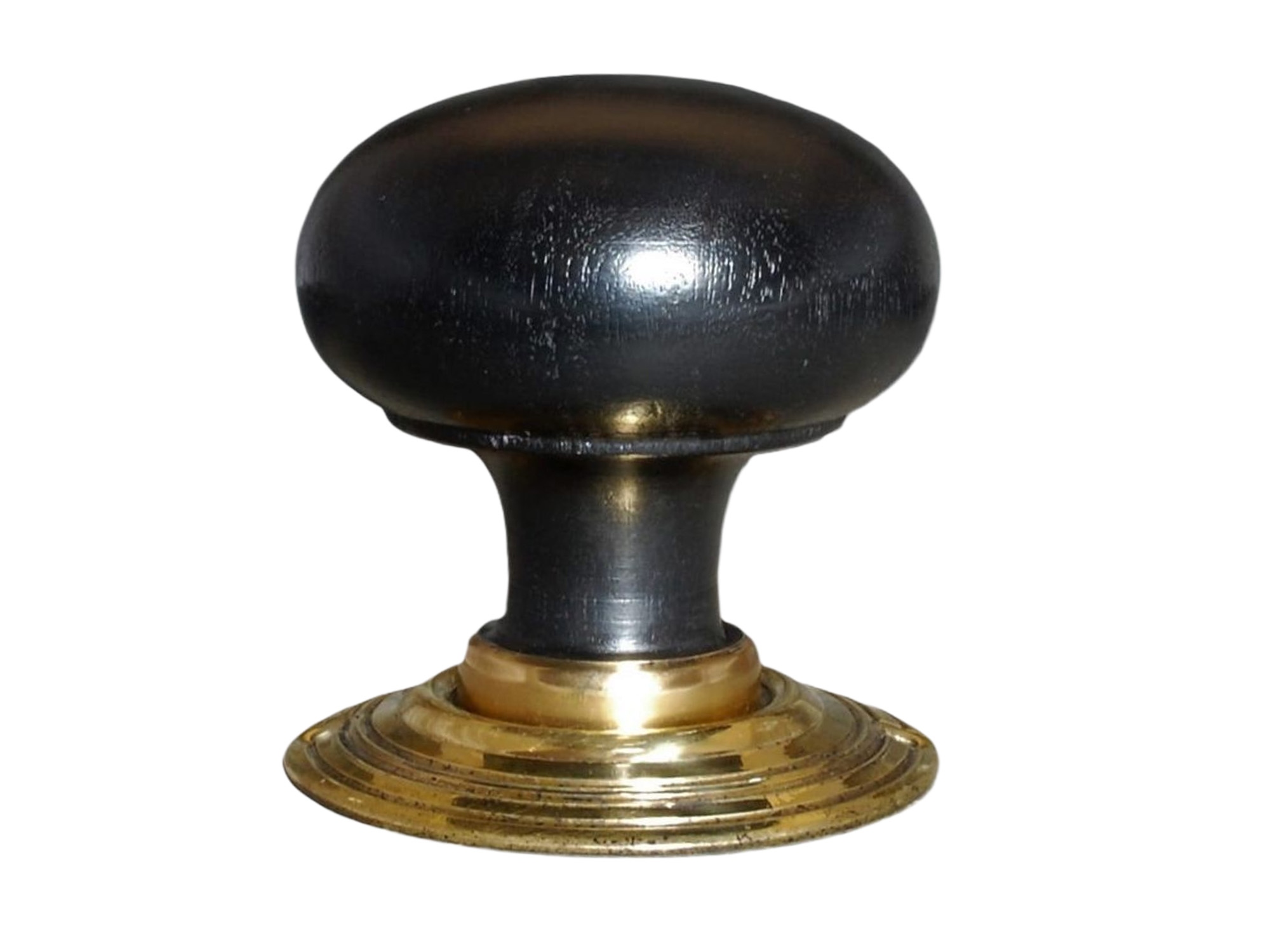 Finish: Black Ebonised Knob with Polished Brass Rose