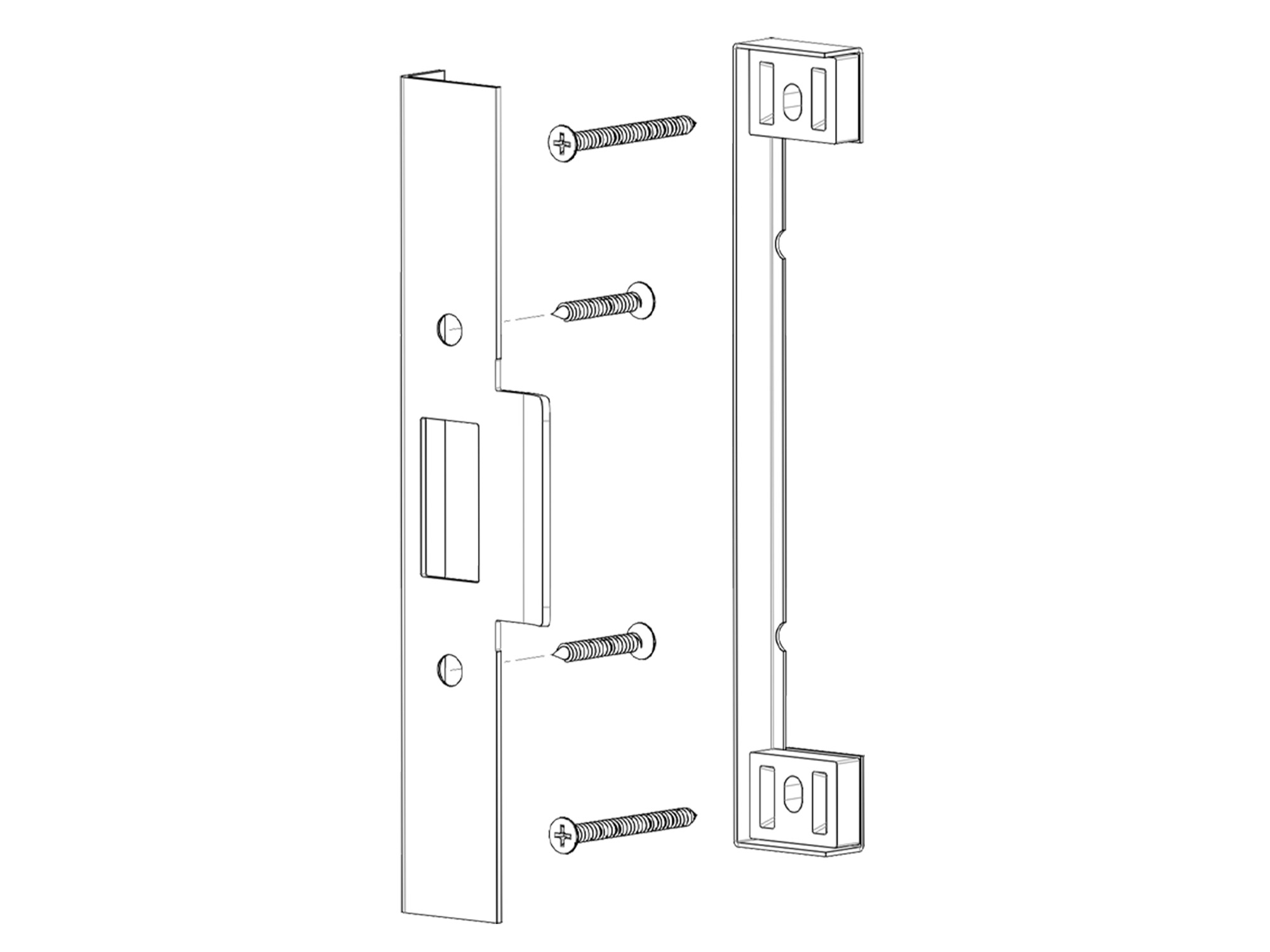 Includes packer, rebated strike, and fixing screws