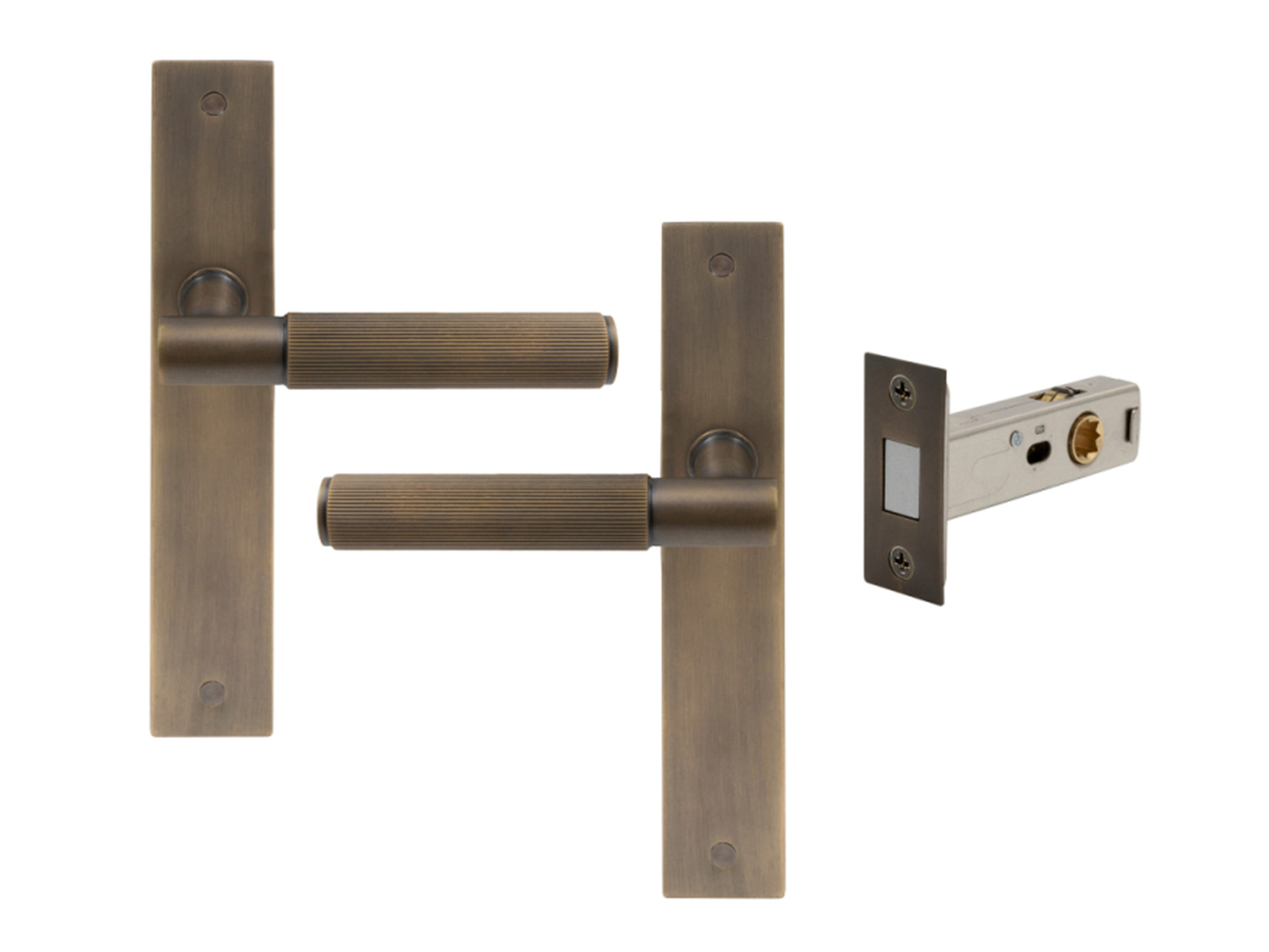 Inspired by industrial pipe systems with a dominant T-bar intersection of the neck to lever expanding into a barrel feature etched in knurled options.