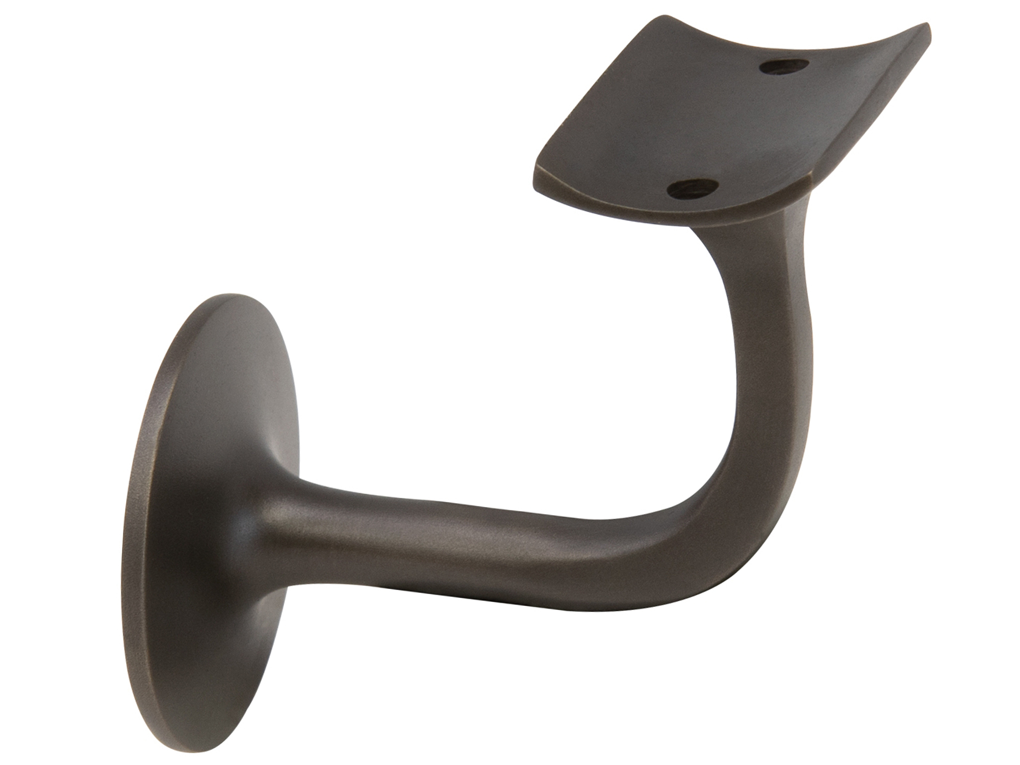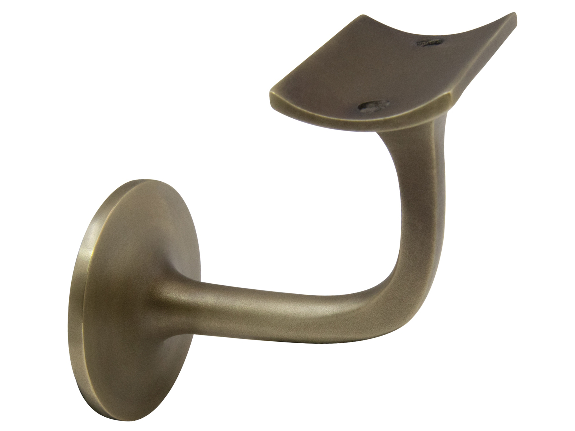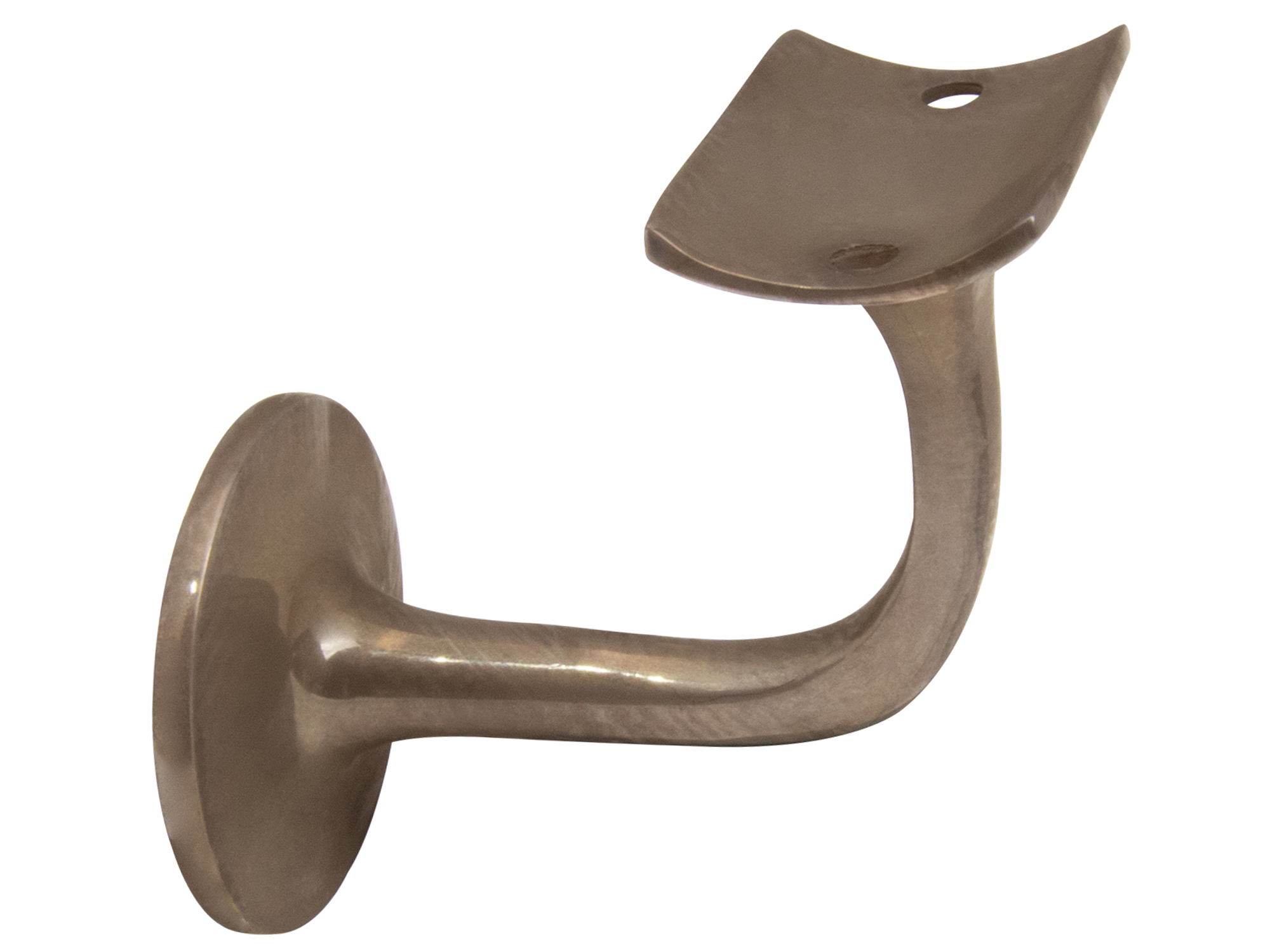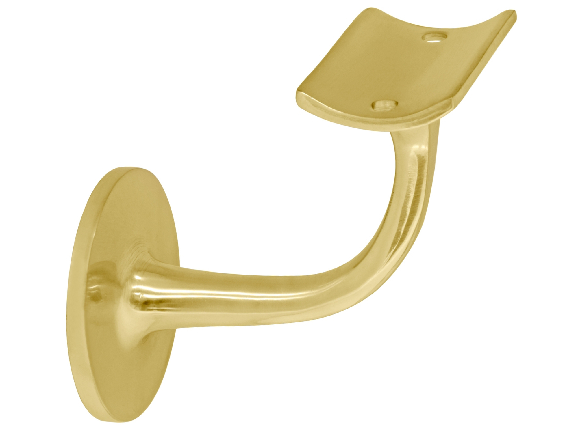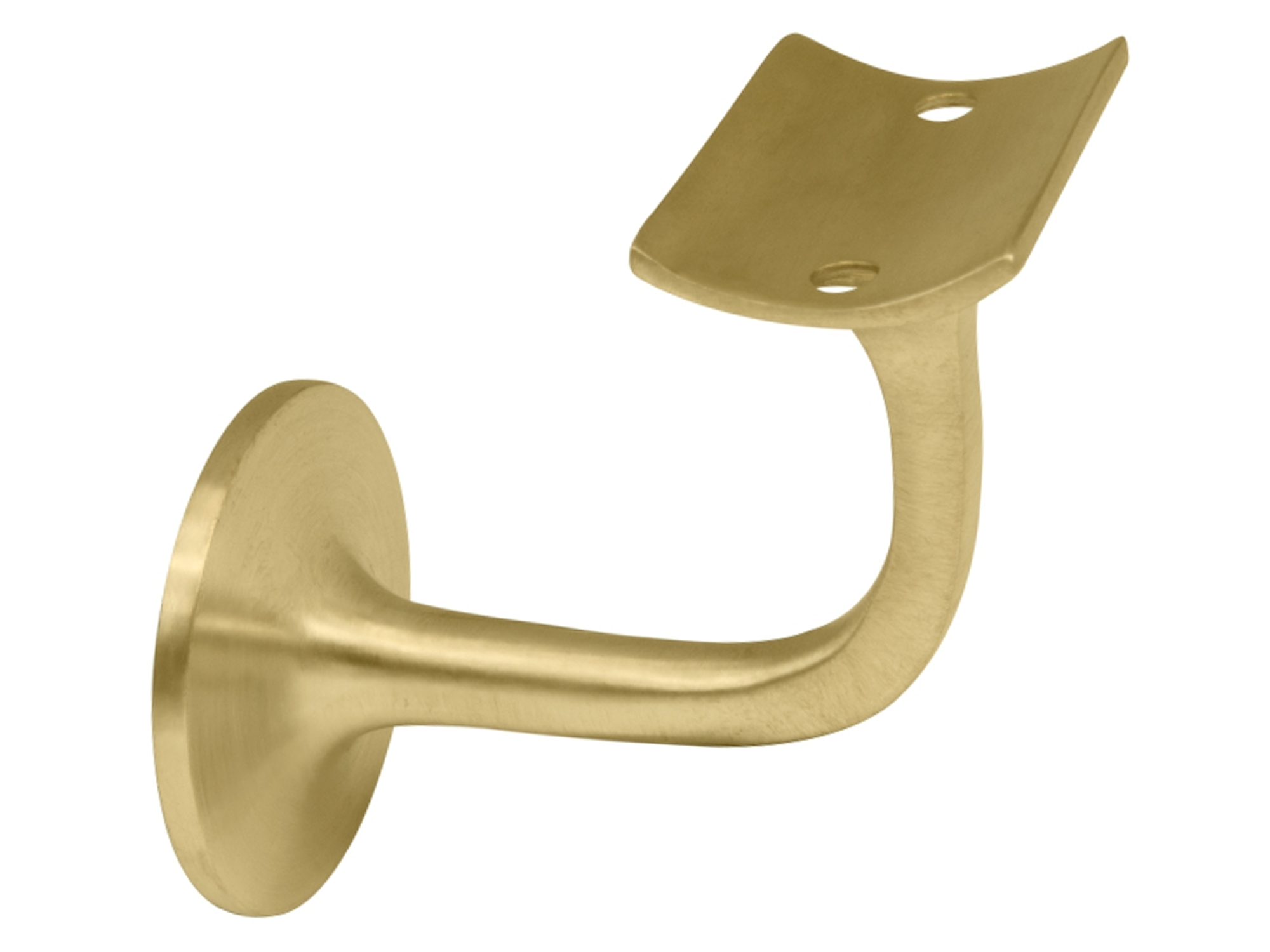 Available in 11 different finishes these solid brass handrail bracket with visible fixings are suitable for use with curved timber handrails.