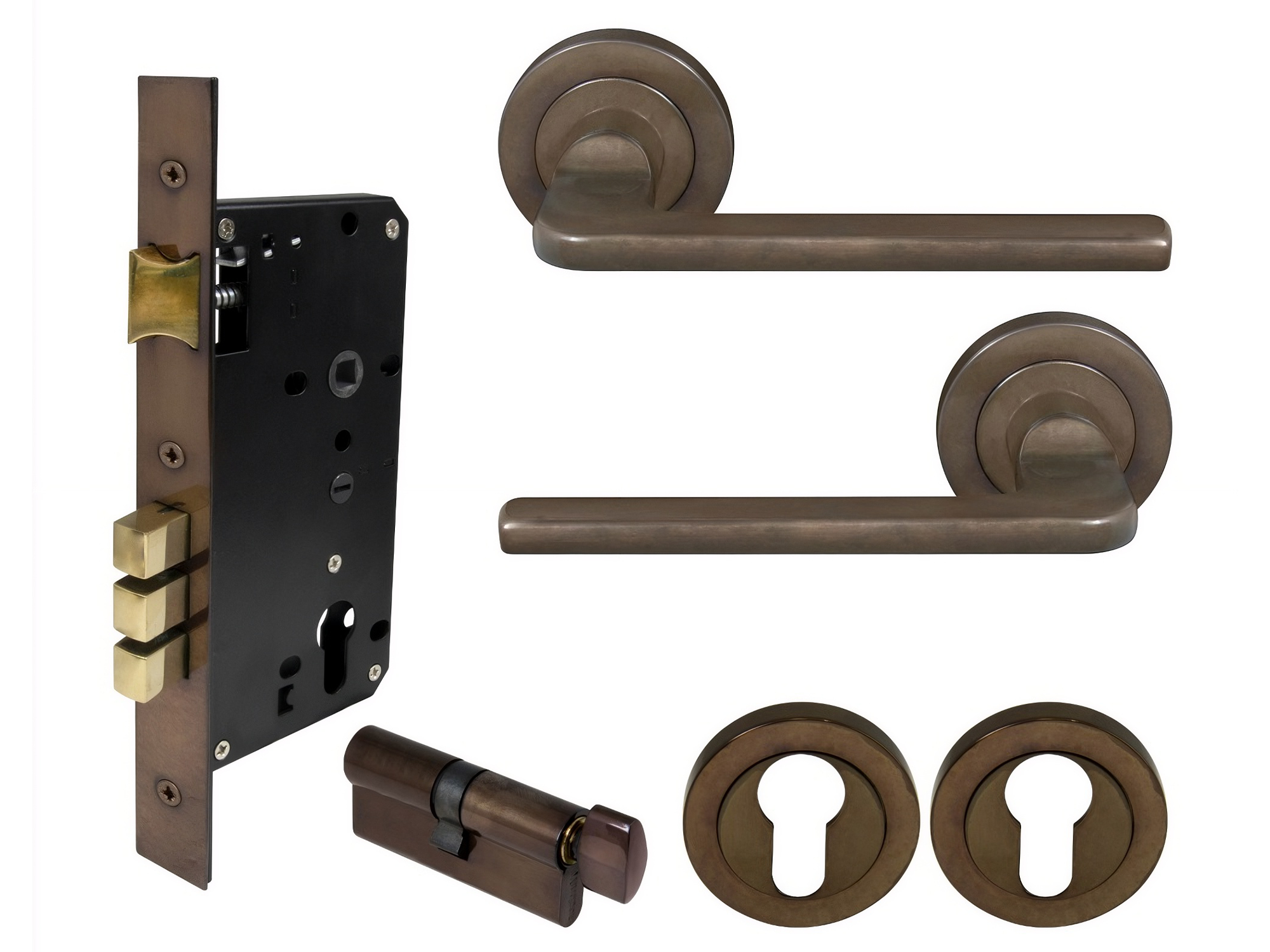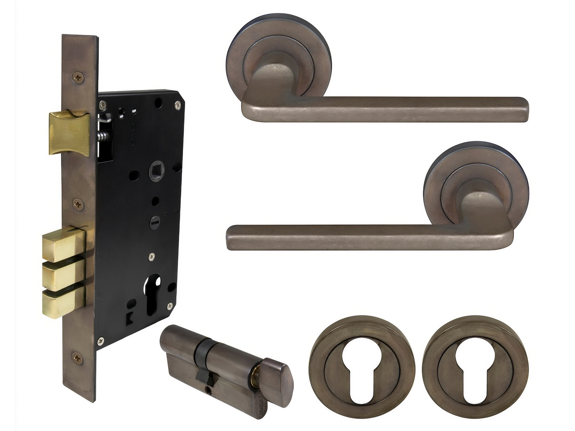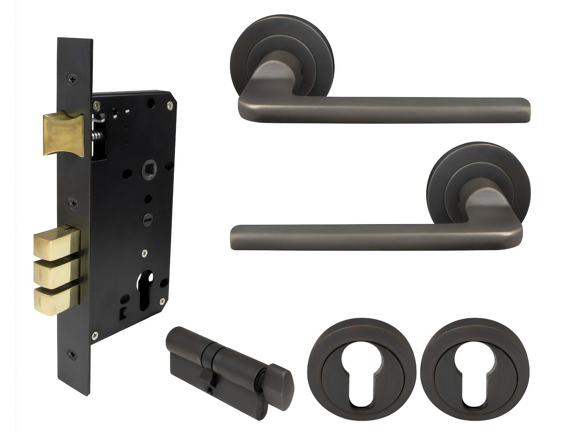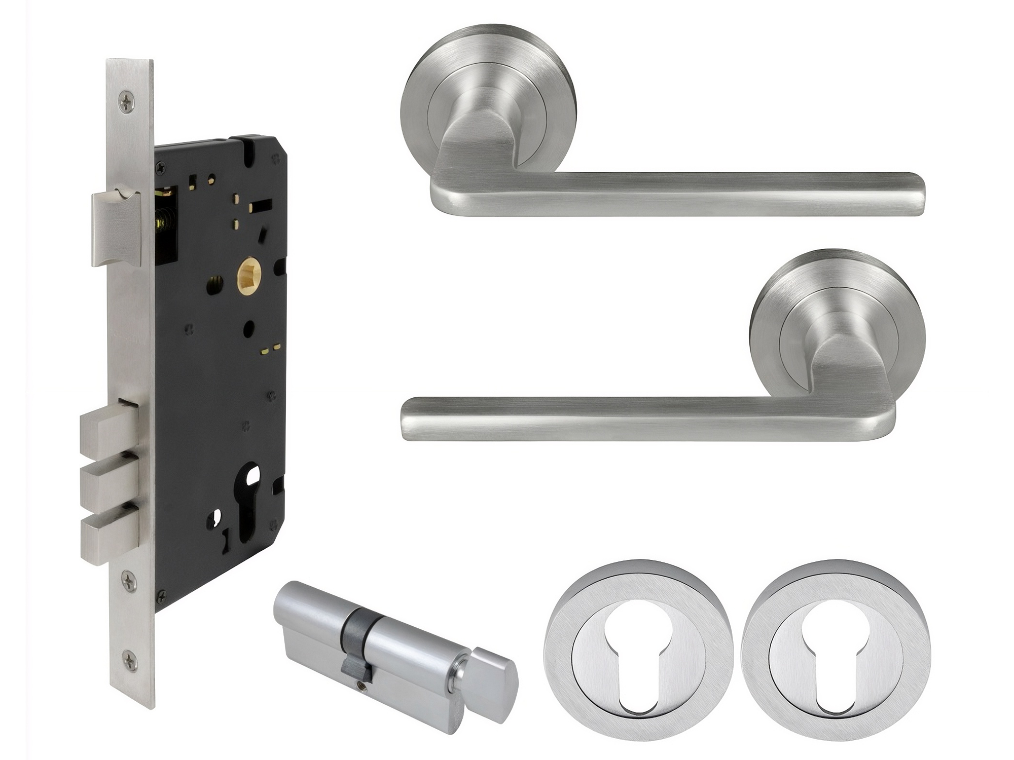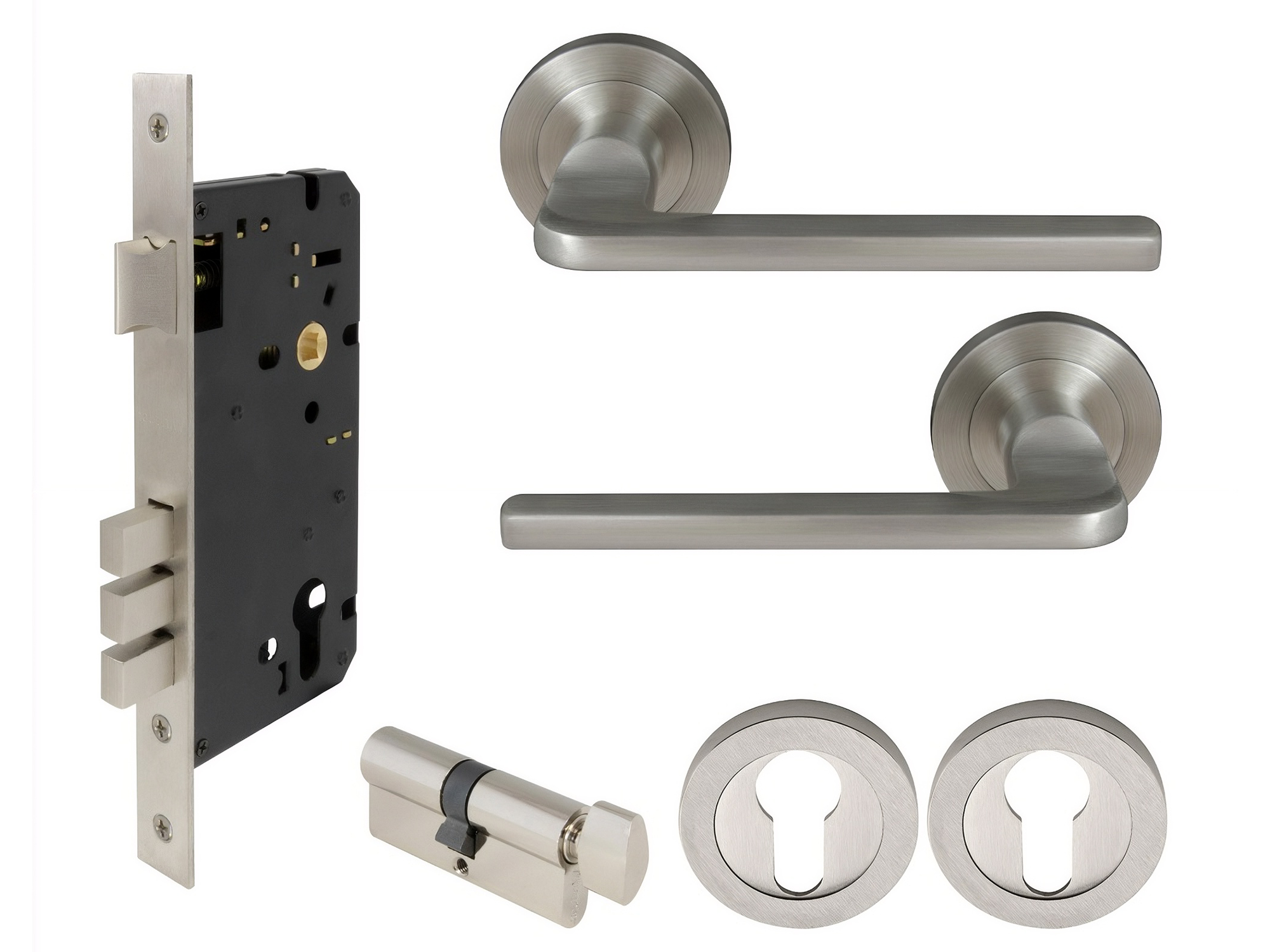 Handle supplied with spindle and fixing screws and 1172 57mm backset tubular latch.