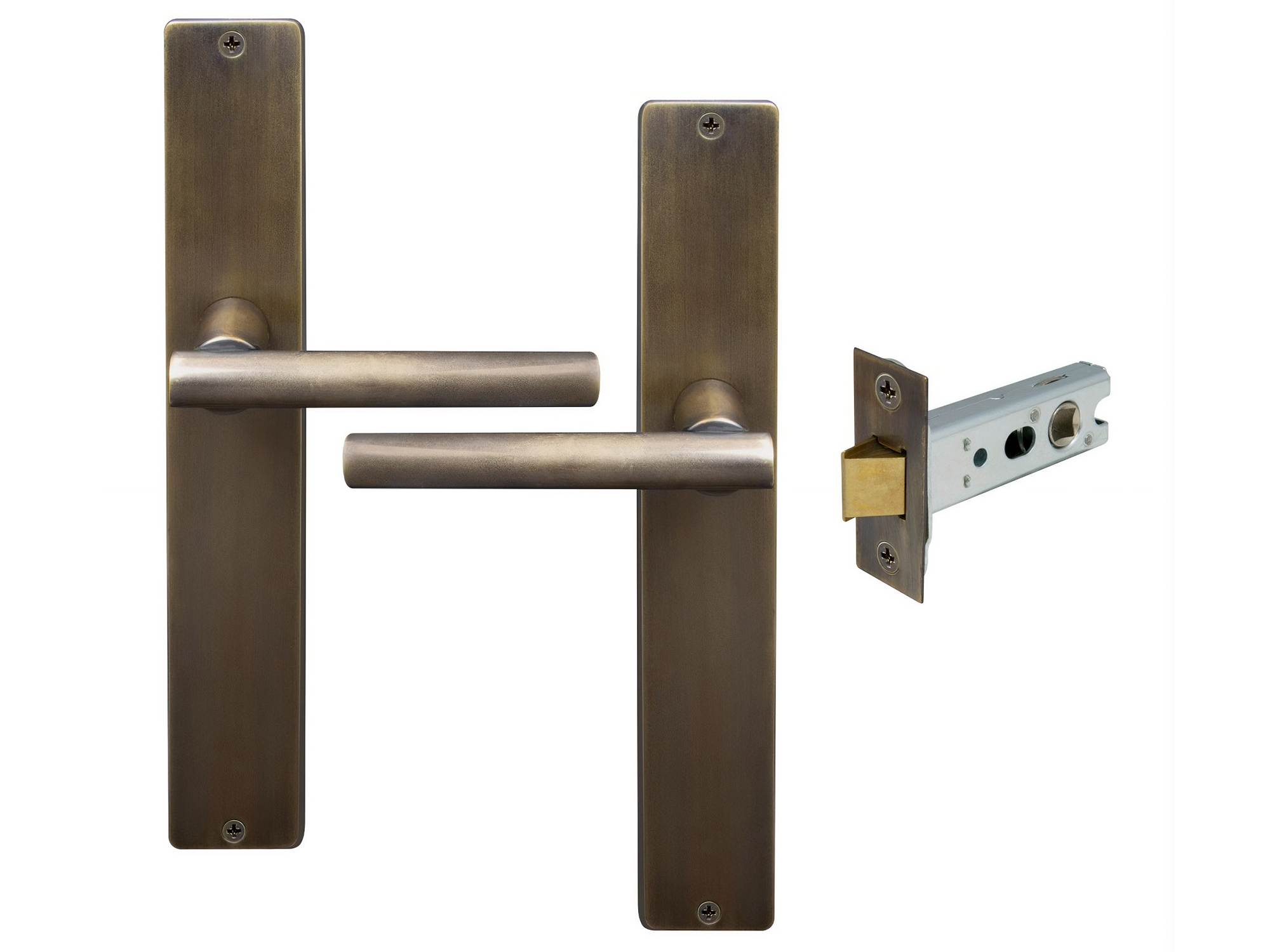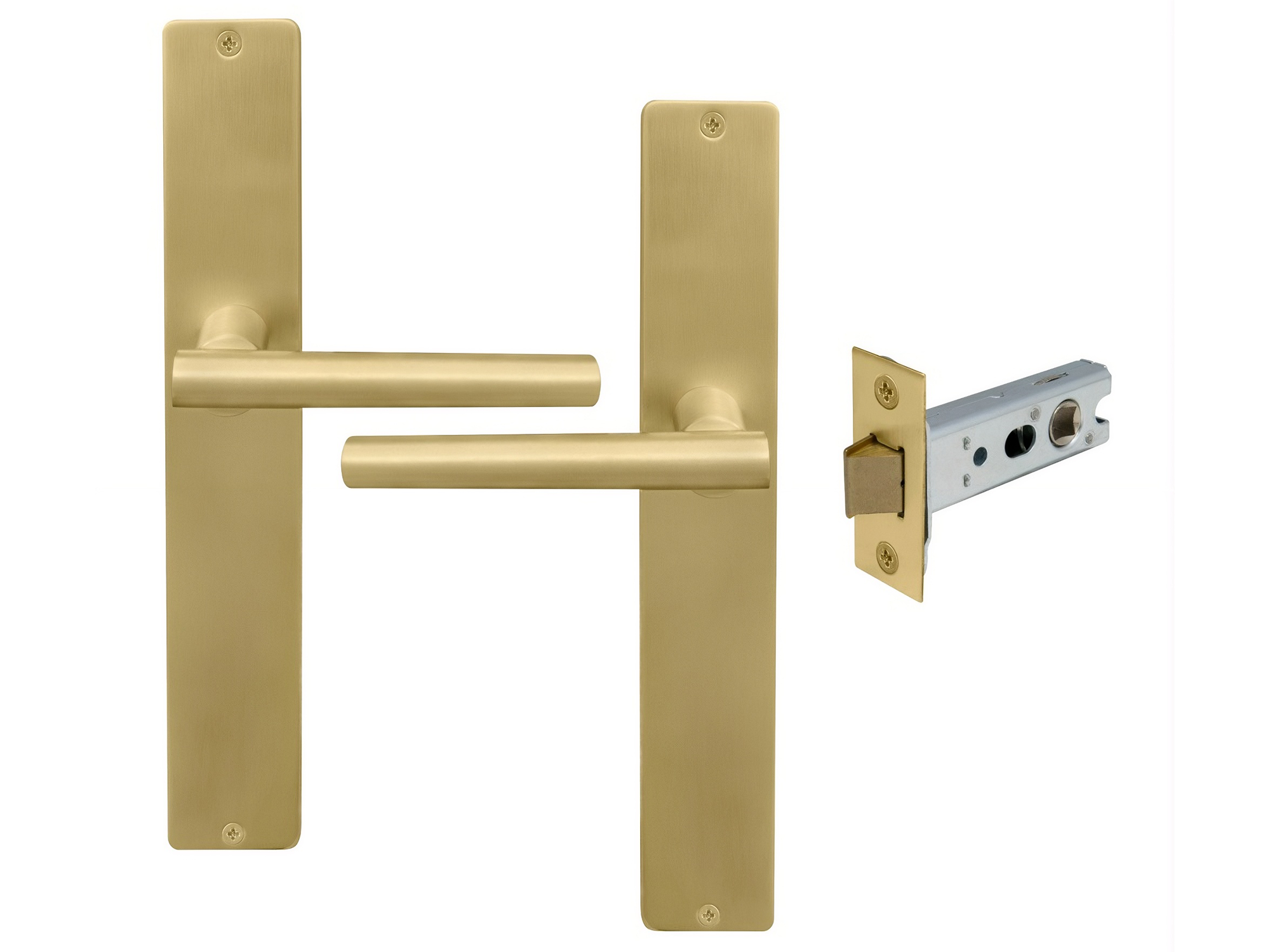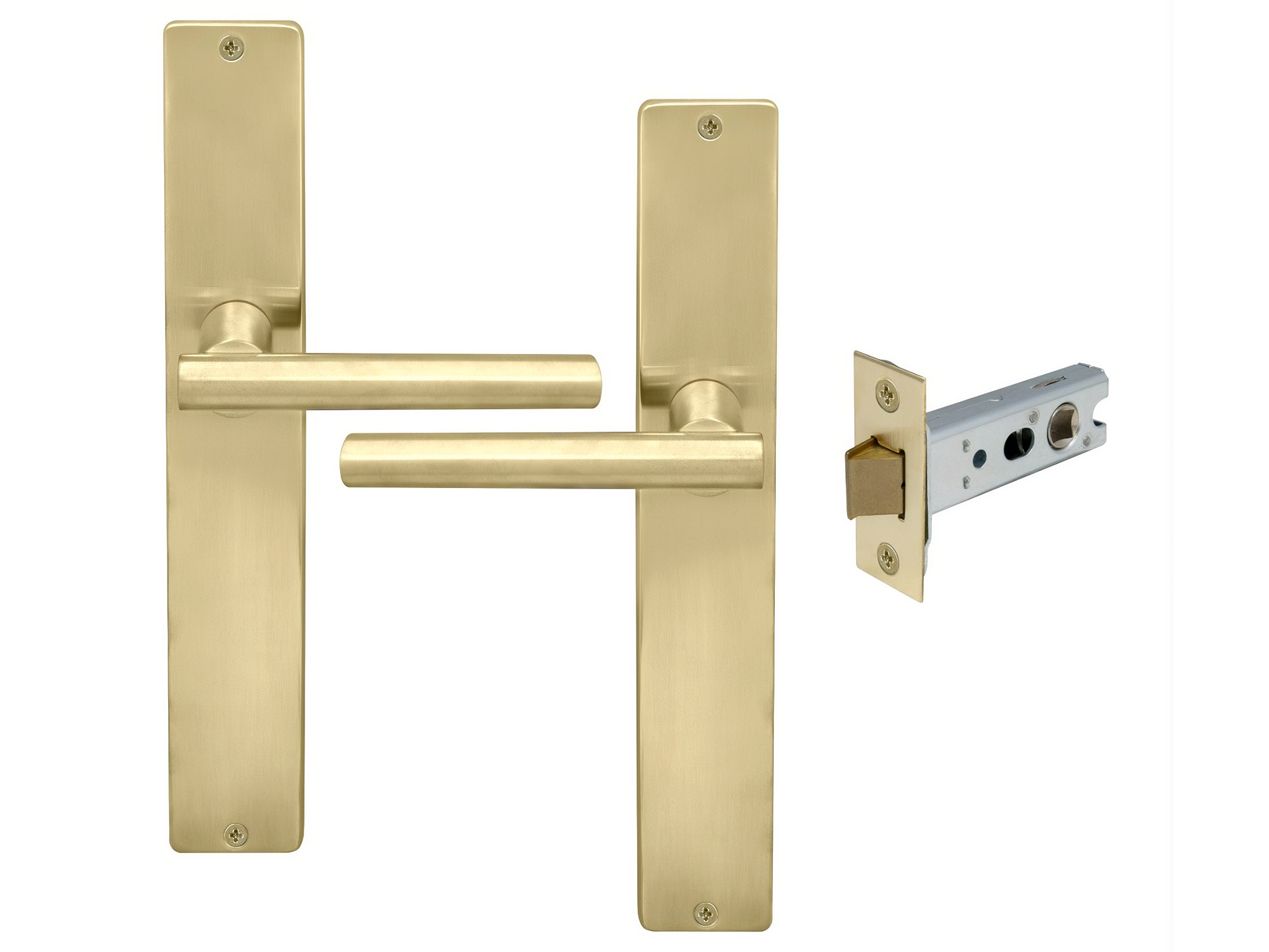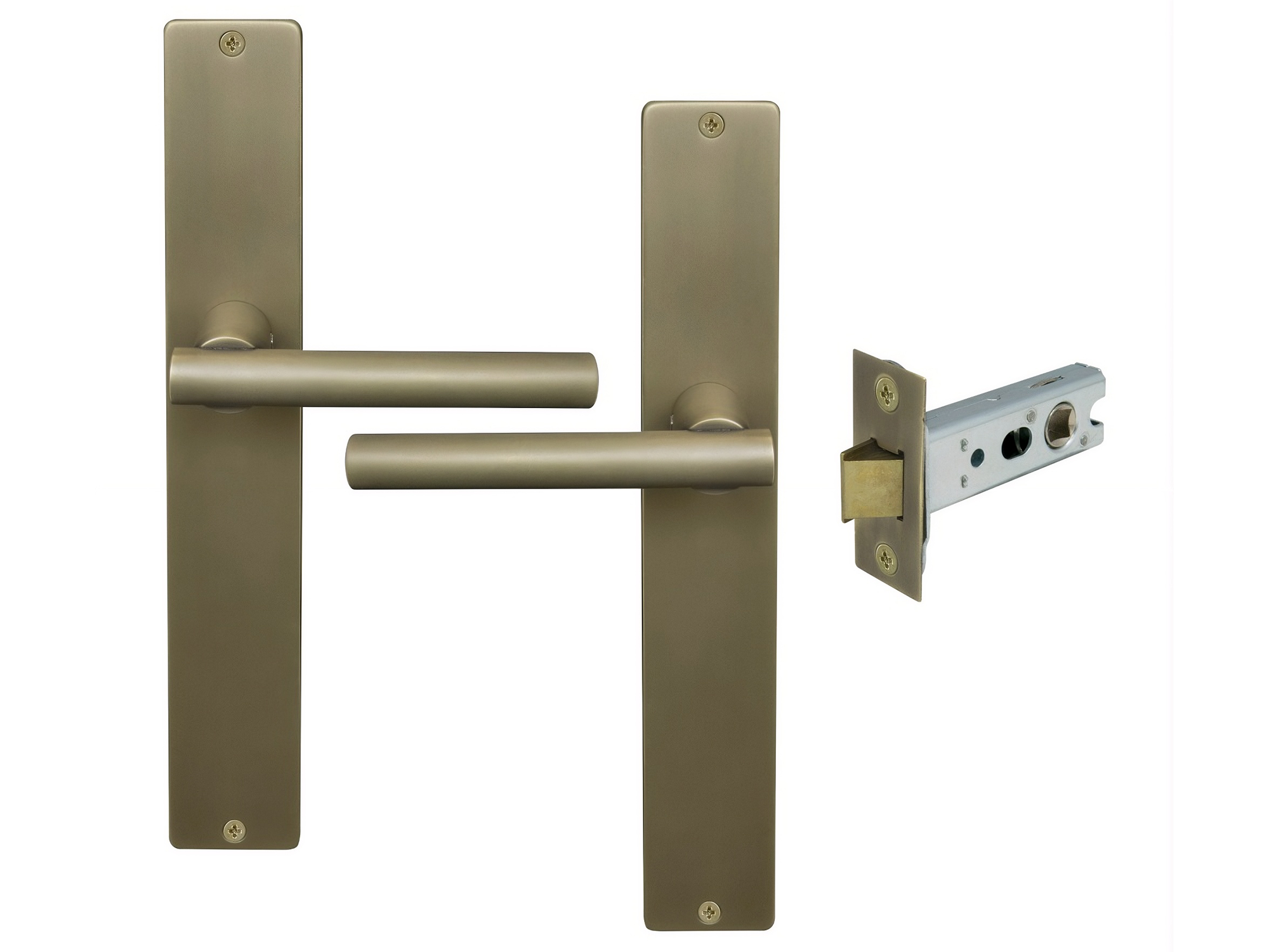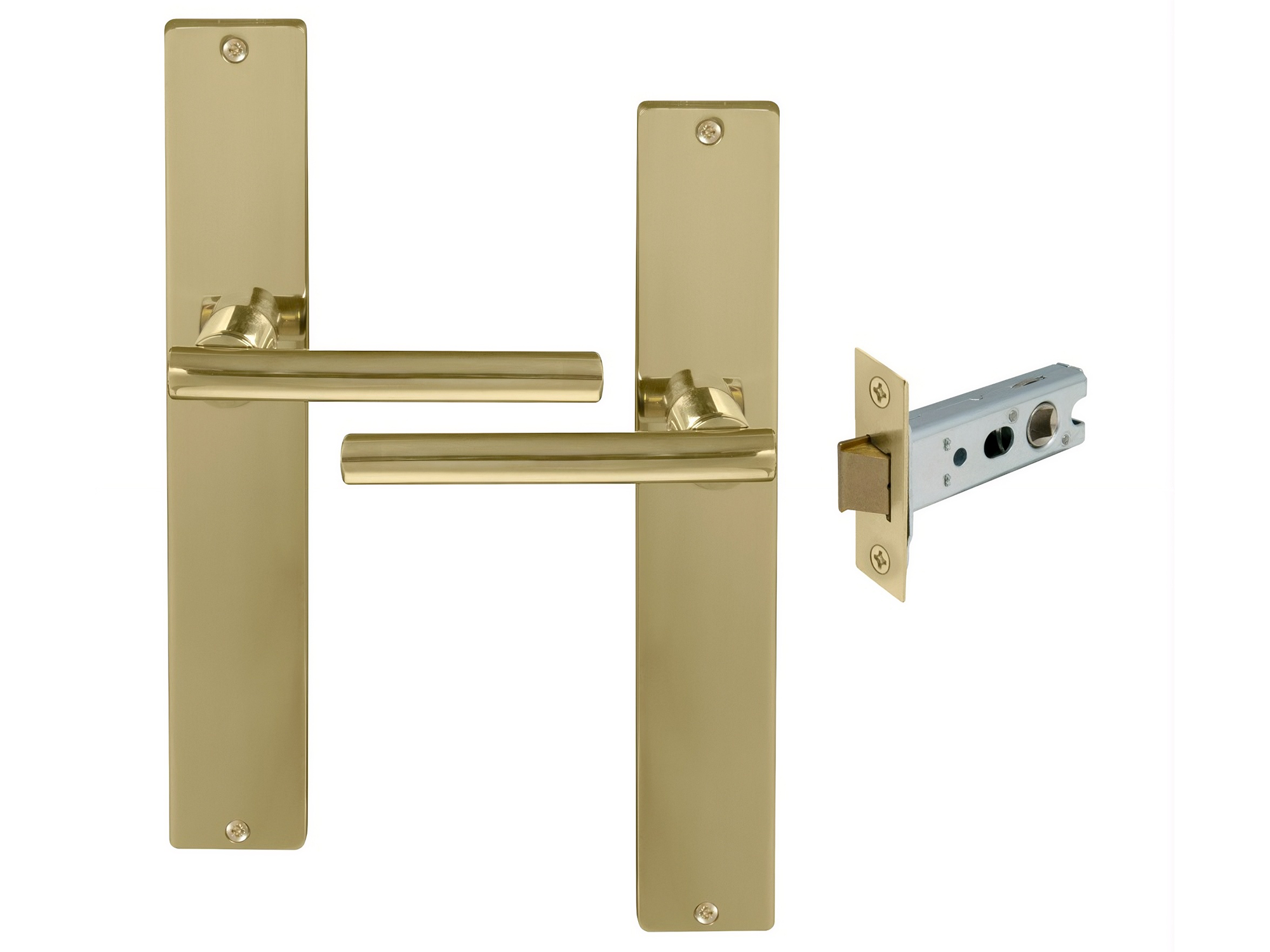 Kit includes a pair of handles with 1172 Heavy-duty 57mm backset tubular latch and fixing screws.