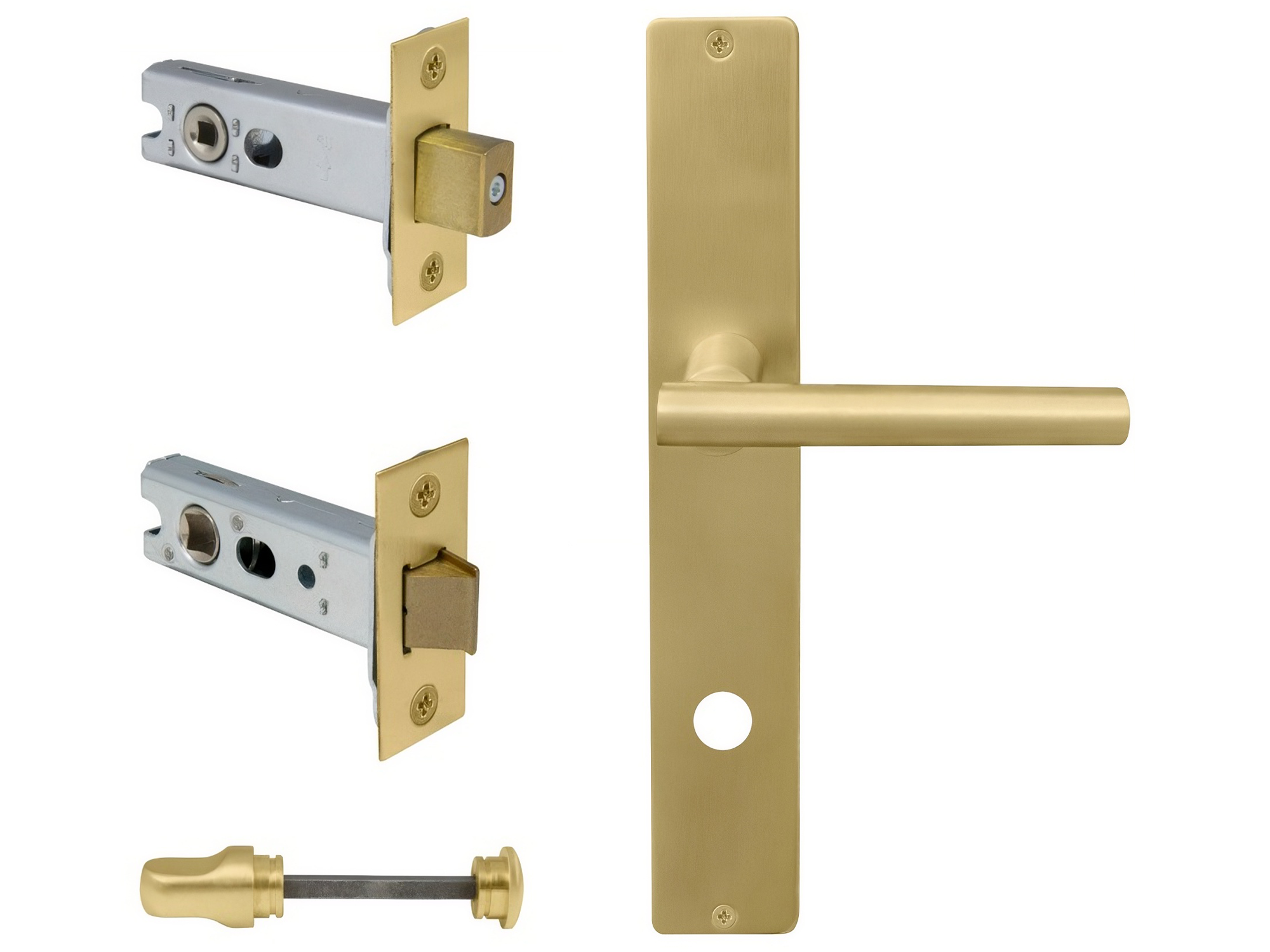 Kit includes a pair of handles with 1172 Heavy-duty 57mm backset tubular latch, 1173 privacy bolt and fixing screws.