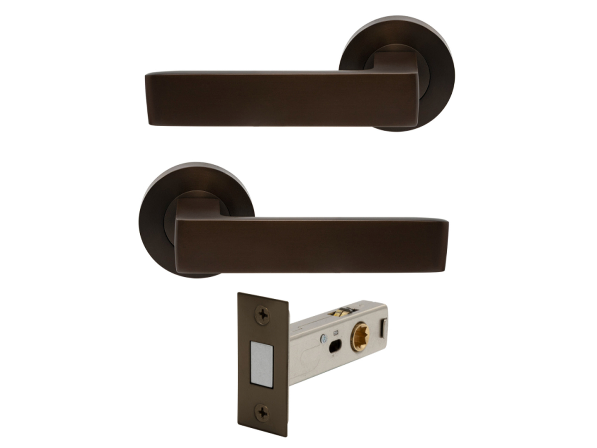 7196 Integrated Privacy Set includes handle set with 1358 60mm back set tubular privacy latch