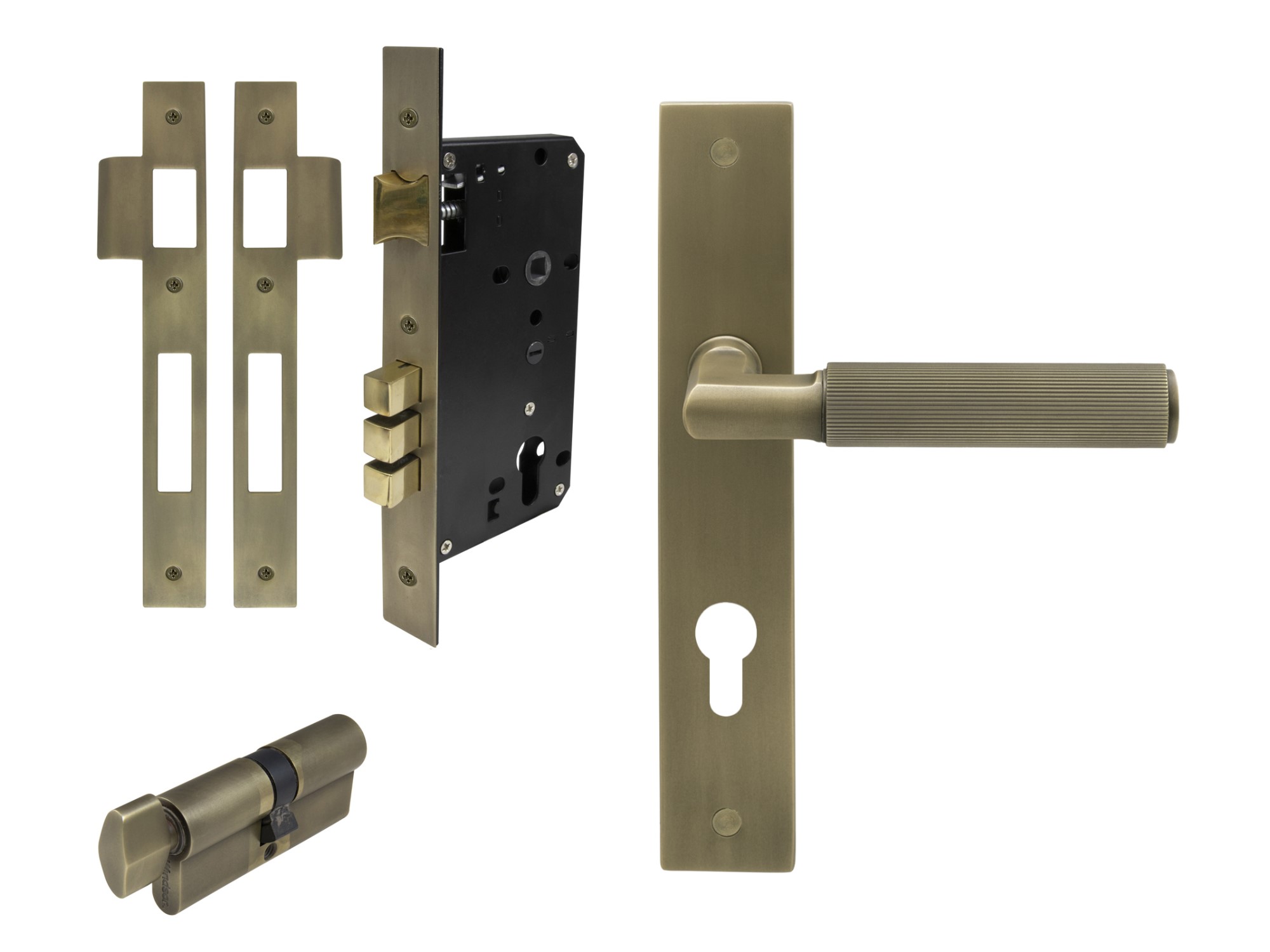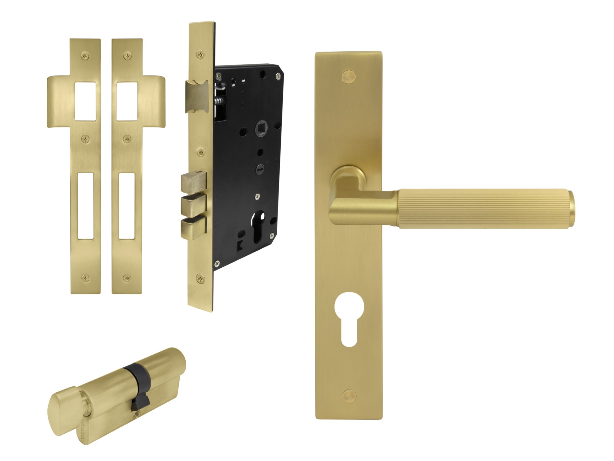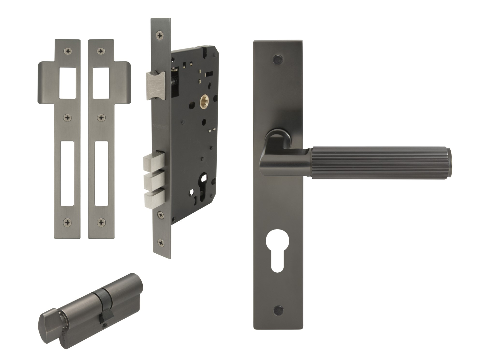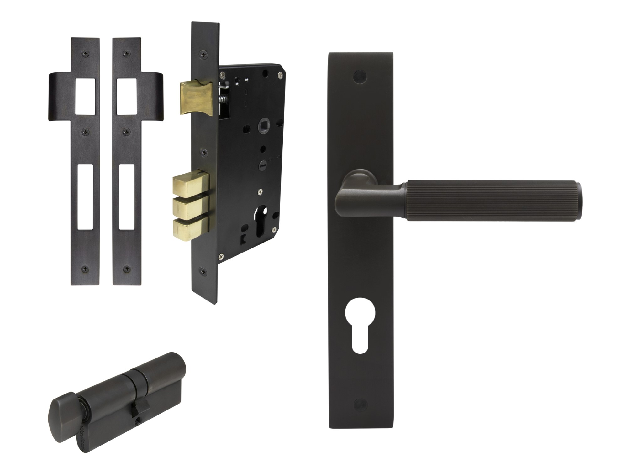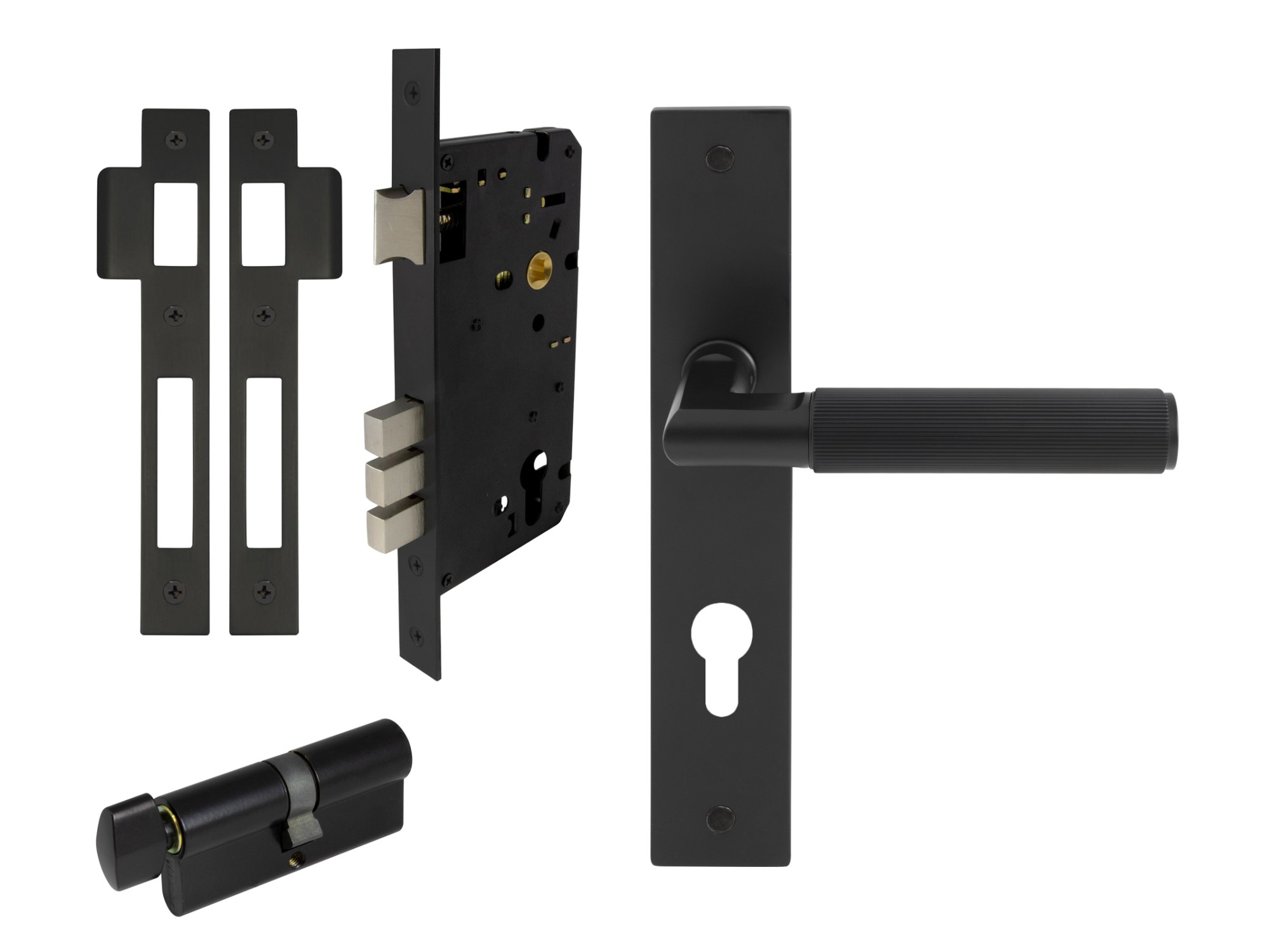 1 x Pair longplate handles, 1 x 1172 57mm backset tubular latch.