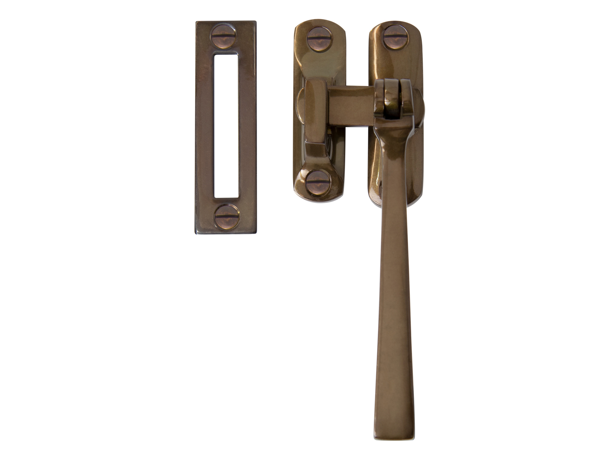 Available in 11 different finishes these solid brass window fasteners are used on timber casement windows in conjunction with a fanlight or telescopic stay to hold the window open to provide ventilation.