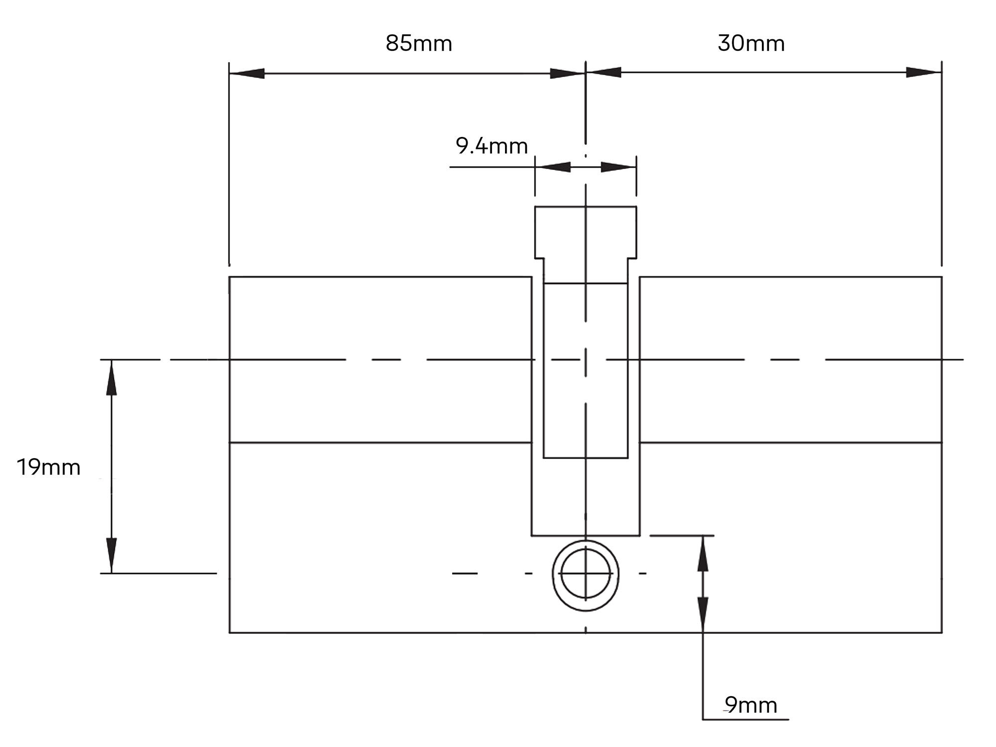 Note: Offset 85 x 30mm to the centre of the cam.