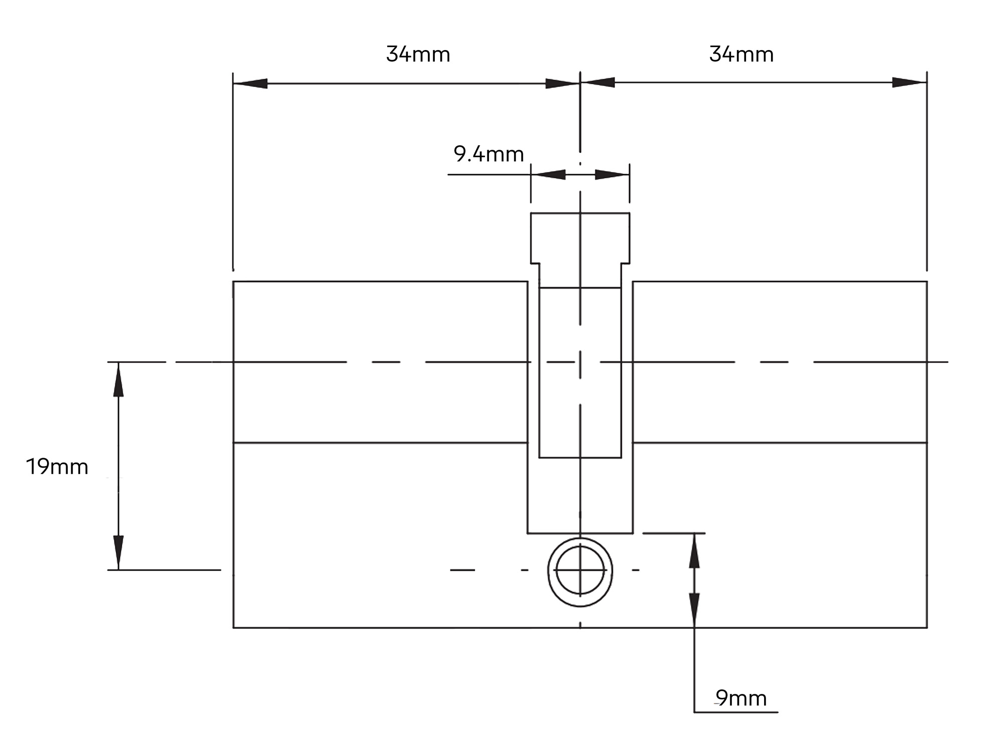 Note: Offset 34 x 34mm to the centre of the cam.