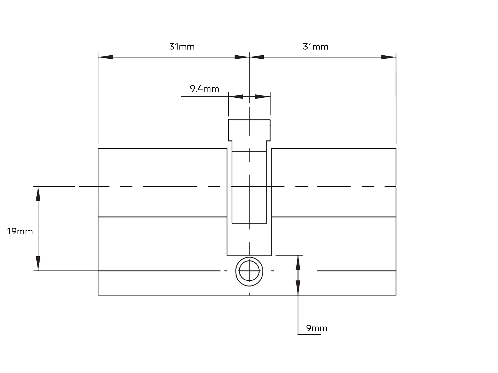 Note: Offset 31 x 31mm to the centre of the cam.