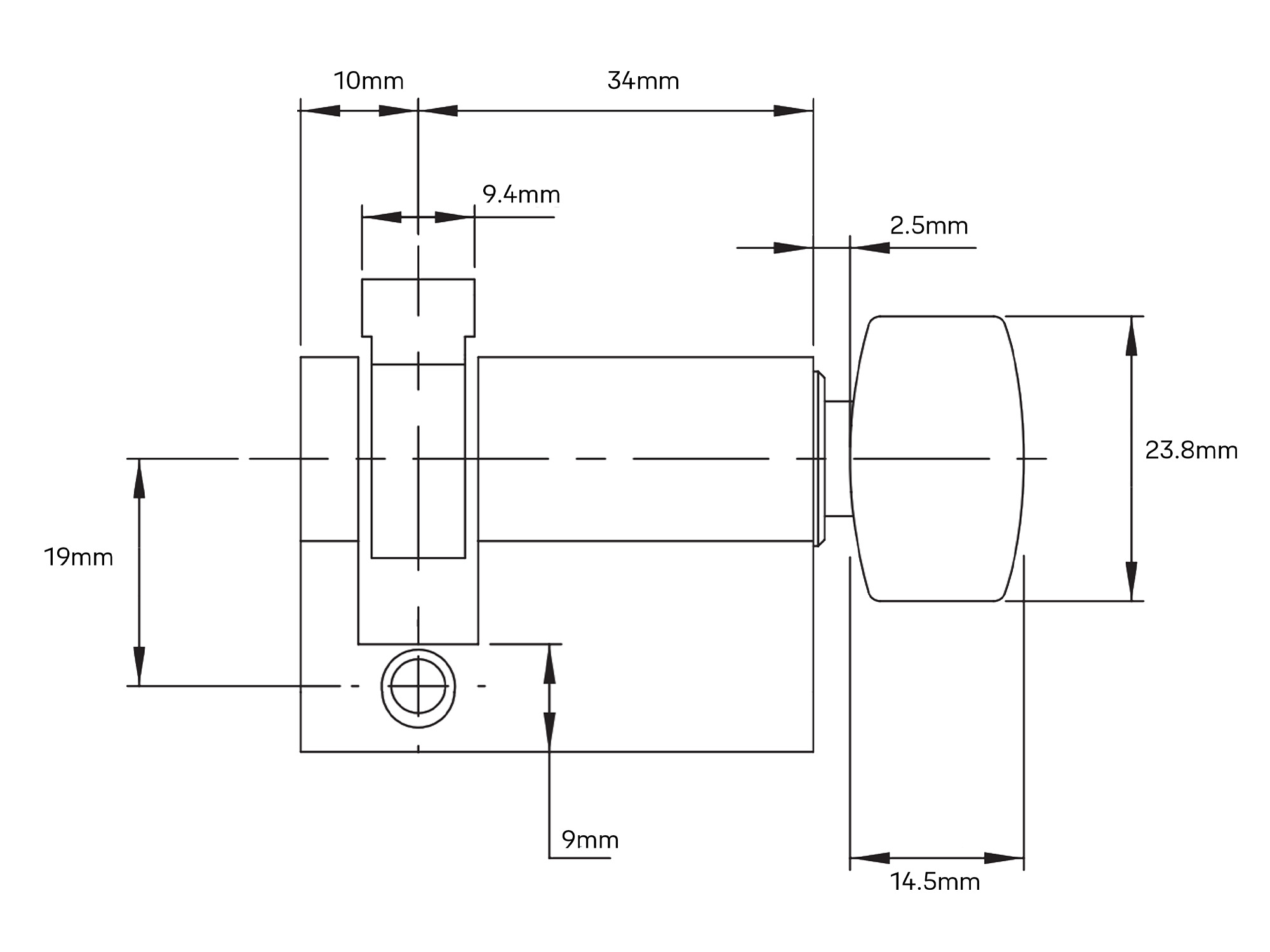 Note: Offset 10 x 34mm to the centre of the cam.