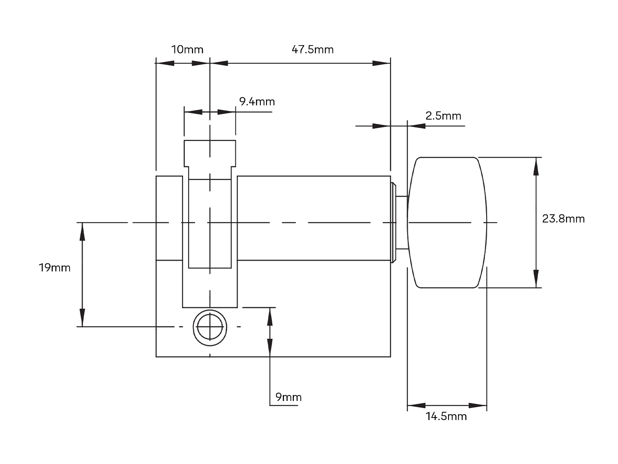 Note: Offset 10 x 31mm to the centre of the cam.