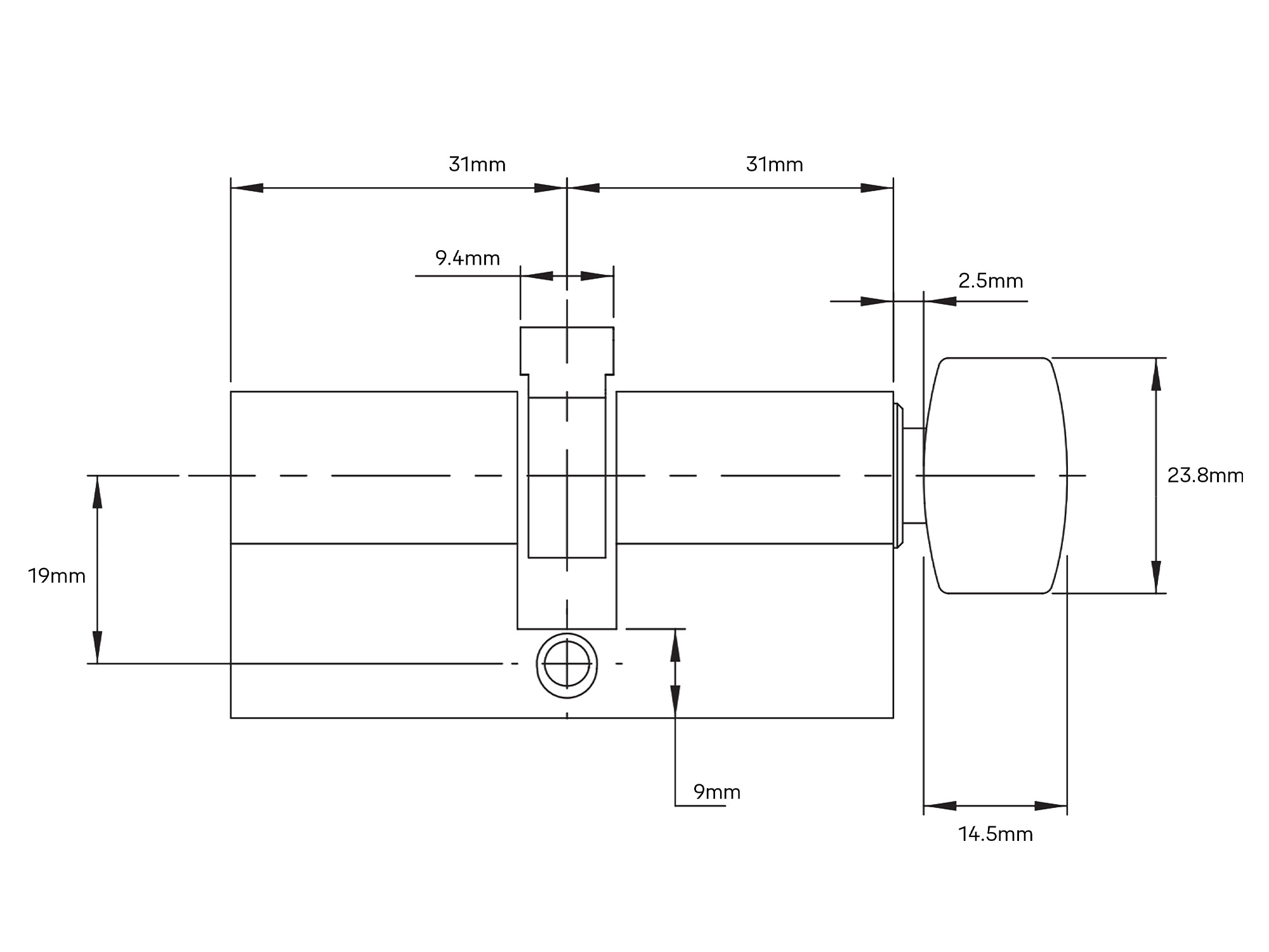 Yale Euro Cylinder With Turn Fixed Cam 5pin 31/31