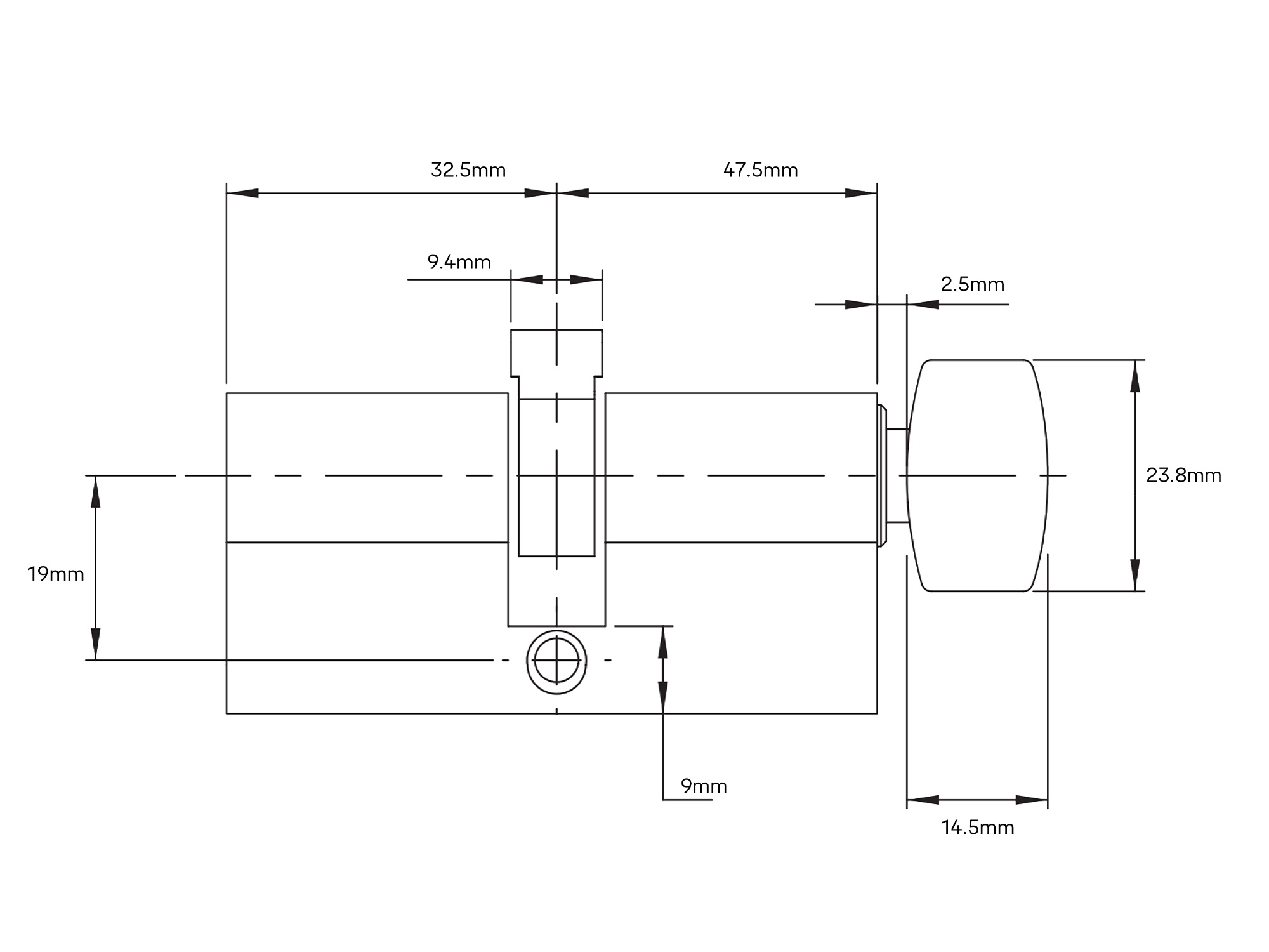 Yale Euro Cylinder With Turn Fixed Cam 5pin 32.5/47.5